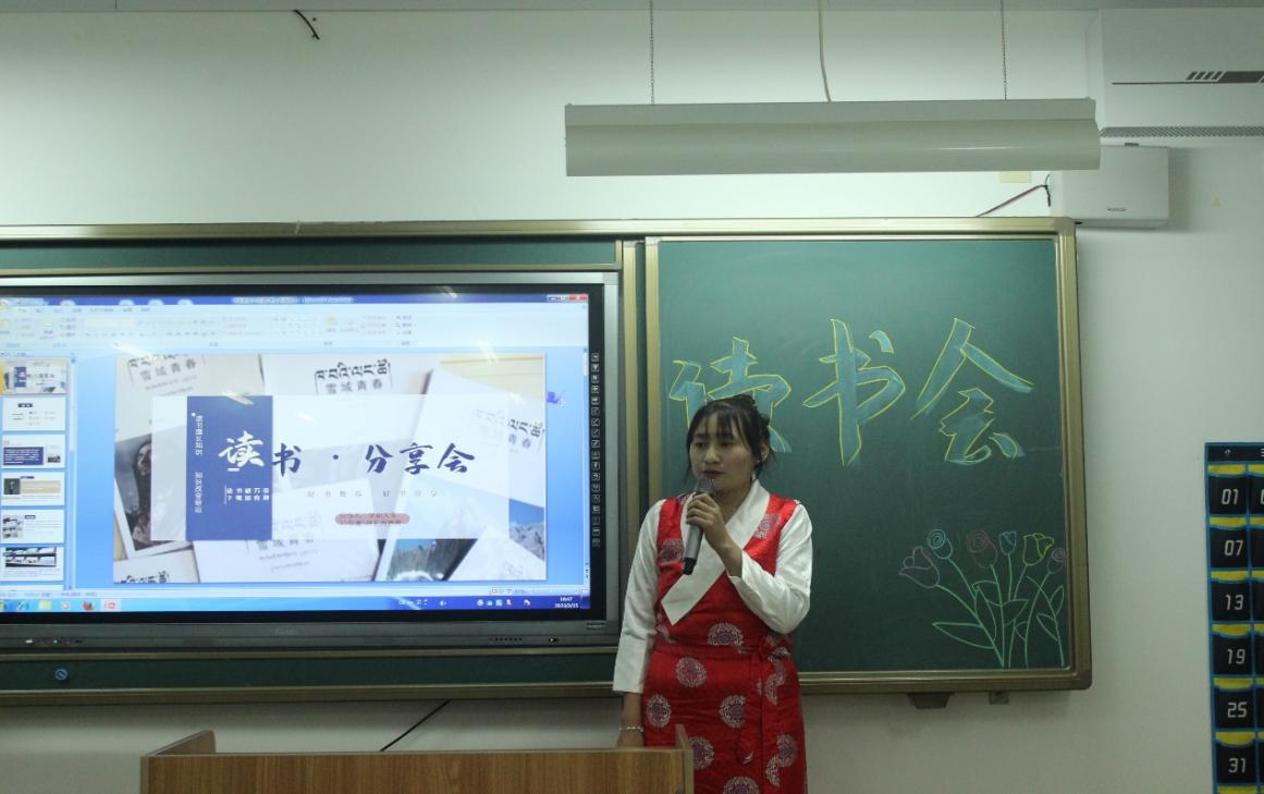 在此次活动中,扎西措姆同学身着民族传统服装为我们分享《雪域青春》一书,让我们了解了藏族独特的工艺探索和民俗创意,同时更深入的认识到民族团结一家亲,在中华民族大家庭中,大家要像石榴籽一样紧紧抱在一起,守望相助。