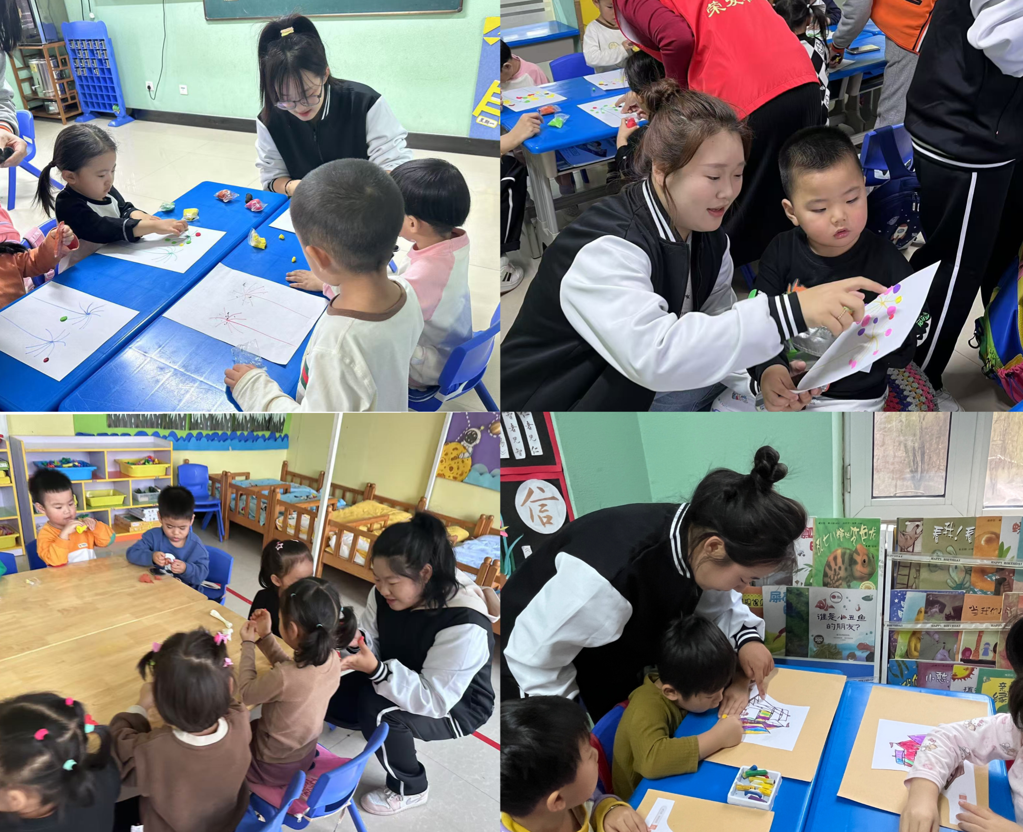 在这充满希望的一天里,志愿者们为孩子们带去了知识与欢乐,展现了青年一代的奉献精神,助力儿童茁壮成长。共有25名志愿者及1名带队老师参加本次活动,志愿者们担任小老师的角色分配到班级中,负责幼儿大、中、小班及学前班的辅助教学工作。