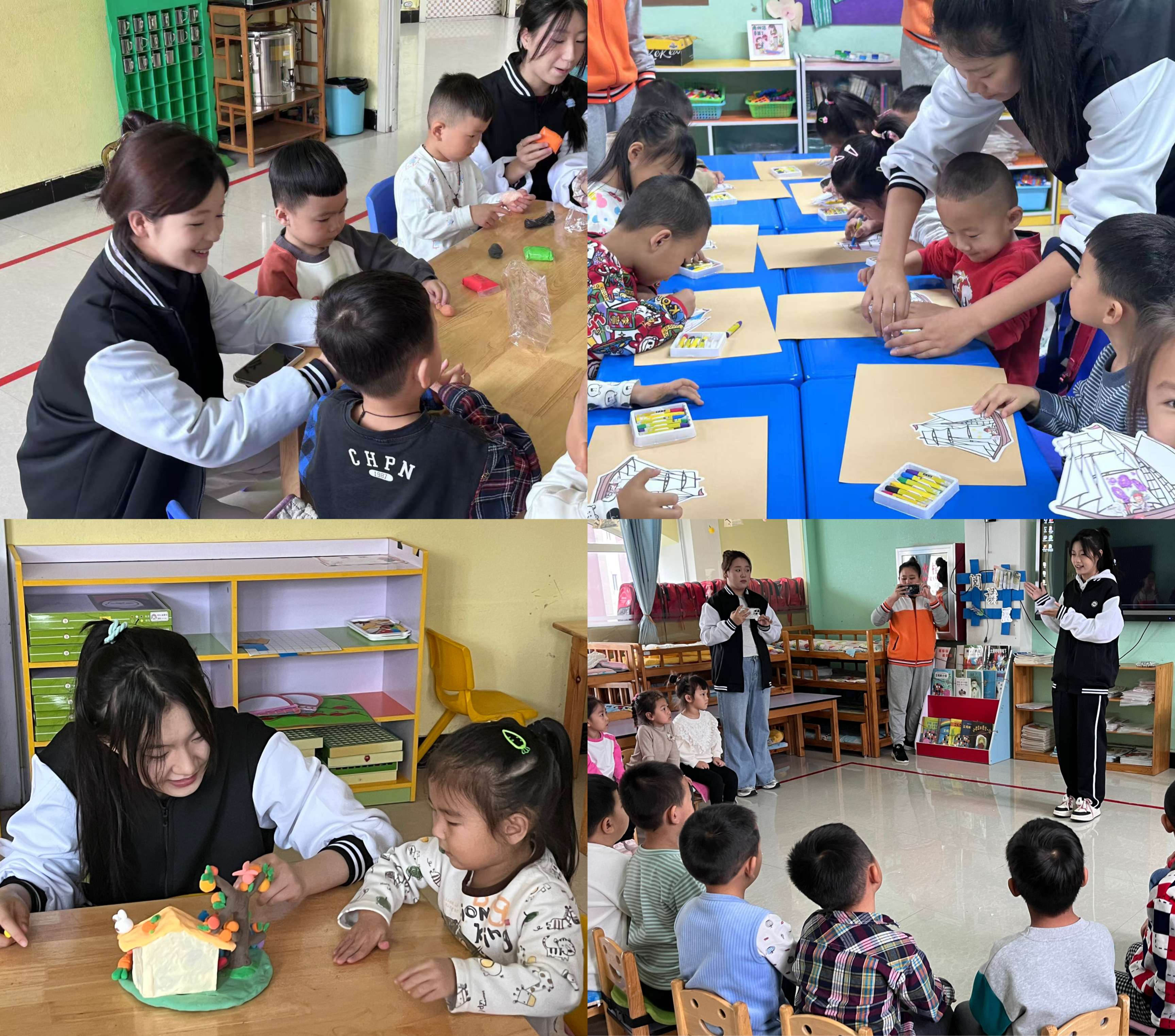 在志愿者们的细心引导下,孩子们运用油画棒和粘土,创作出一件件充满想象的小艺术品,释放了他们的创造力。志愿者们还讲述生动的故事,引得孩子们专注聆听,眼神中流露出对世界的好奇与渴望。在绘画课上,孩子们与志愿者共同用色彩描绘心中的世界,一幅幅五彩斑斓的画作,犹如他们梦想的翅膀。