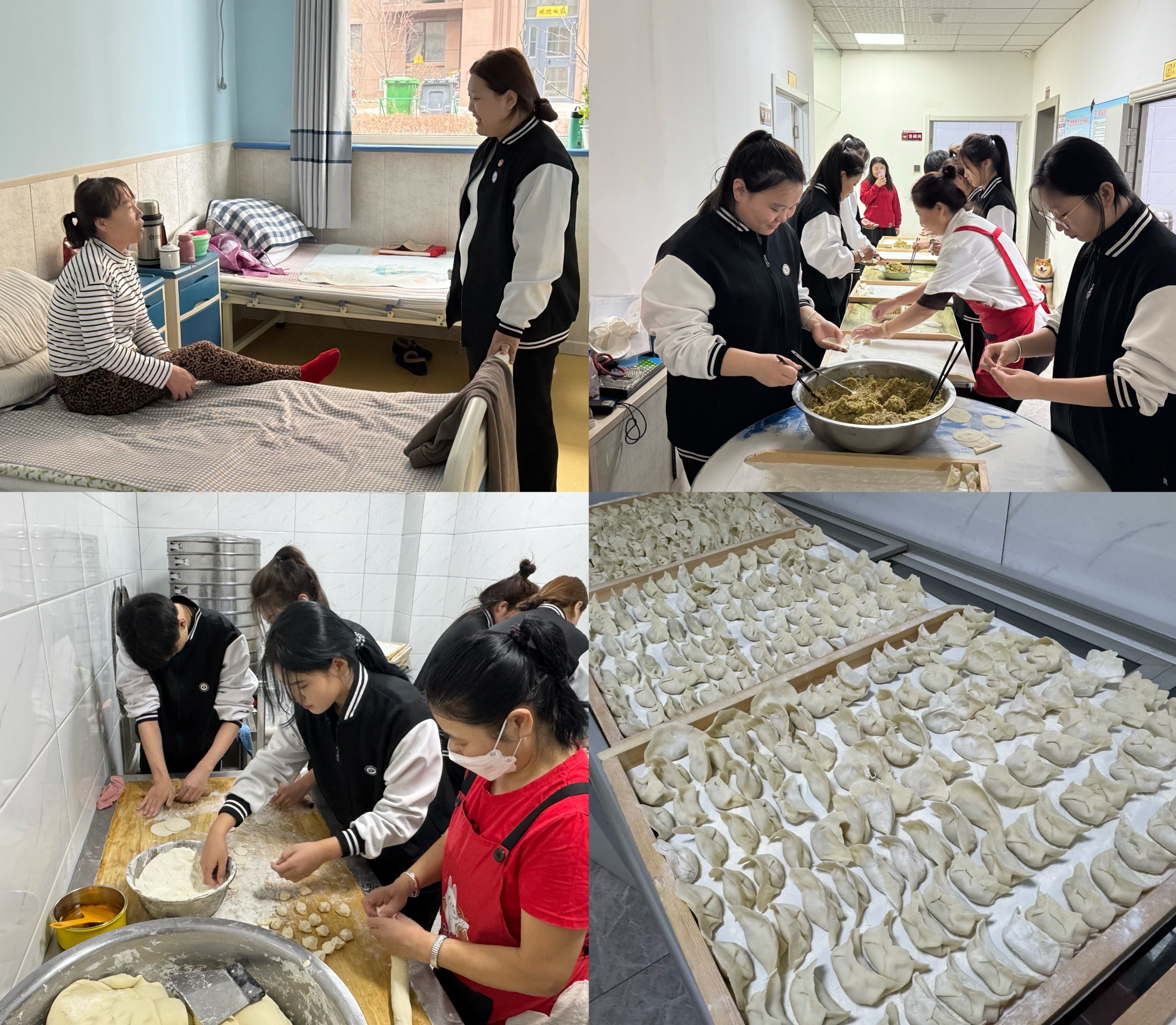 2025年3月1日,同学们走进长春市碧泉养老服务中心,向老人们讲述了关于“龙抬头”的传说故事,并与他们共同制作了传统的美食饺子,让老人们品尝并分享自己的美食记忆,拉近了彼此的距离。同时,同学们还协助老人们打扫居所,通过交流和倾听,打破了代沟增加了陪伴。