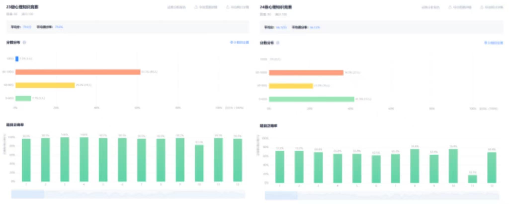 竞赛内容覆盖心理学基础知识、心理咨询技术等核心课程,设置多种题型,根据年级分不同赛道,重点考察员工对基础知识的掌握及课余时间是否主动学习、是否对行业前沿动态有所涉猎。线上平台实现试题随机分发、作答进度跟踪及防切屏监测,确保竞赛规范性与公平性。参赛员工通过移动手机端同步参与,在限时答题中展现出对专业知识点的扎实理解。